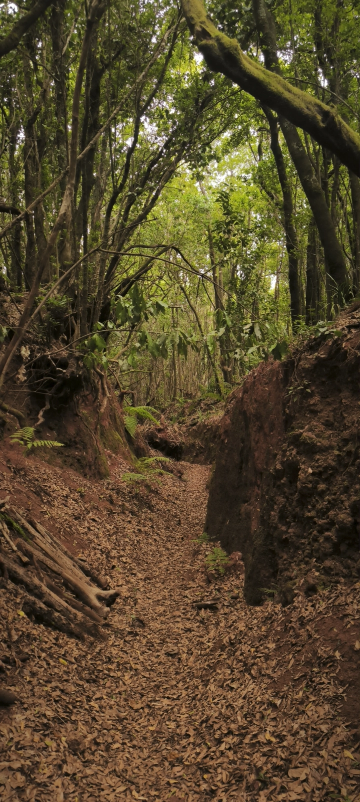 En un solo día puedes caminar bajo la sombra húmeda de una laurisilva que parece sacada de otro tiempo, atravesar túneles excavados en la roca, asomarte a barrancos imposibles o avanzar sobre coladas volcánicas que aún guardan el calor de la tierra.